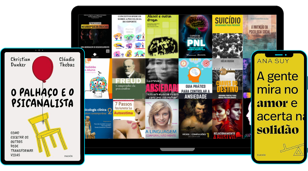 Você terá acesso a mais de 1000 livros de psicologia, todos organizados por temas, como Psicanálise, TCC, Psicologia Infantil, Psicologia Positiva, Neuropsicologia, entre outros.